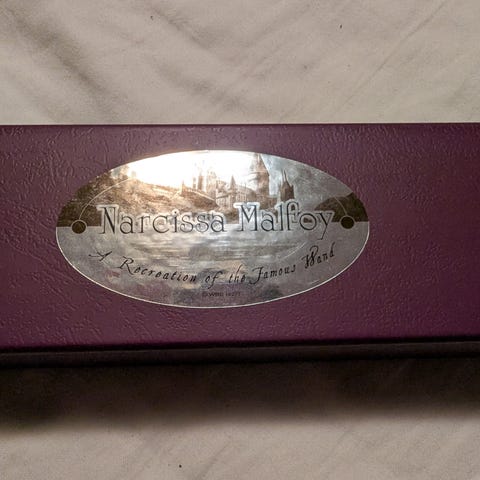 Sælger denne flotte Lucius Malfoy tryllestav, kendt fra Harry Potter-filmene. Den er designet med det karakteristiske slangemotiv på håndtaget og kommer i original æske med sort fløjlsindlæg, som giver en elegant præsentation – perfekt til både samlere og fans af serien.