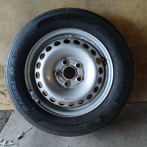 Fælgene er i brugt stand med krakeleringer i lakken. Dækkene, der sidder på, er gamle og bør udskiftes. Sælges som renoveringsobjekt eller dekorative samlergenstande.