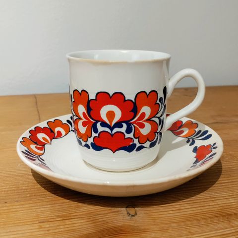 Norsk Egersund krukke med teak låg, vintage. stå eller væghængt beholder