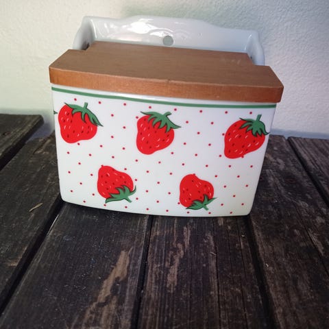 Egersund kaffe-/saltkar med teak låg, fra omk 1960-1970 (Læs Tekst)