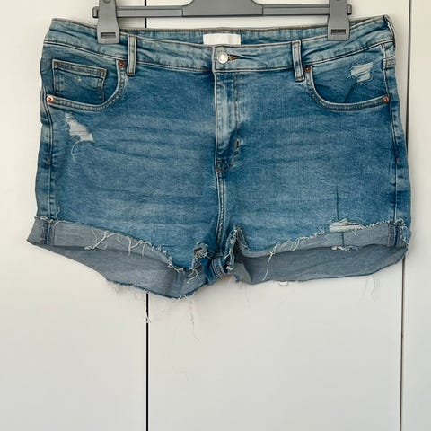 H&M denimshorts i slidt look. Str 34. BILLIGT