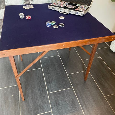 Til kortspil, skak, backgammon og roulette med brikker mm. Står som ny - produceret omkring 1980’erne.