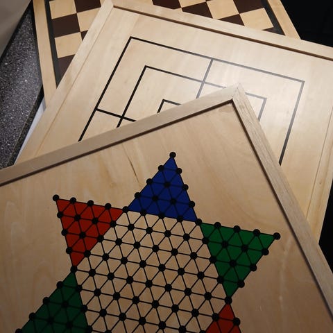 En kasse med 9 brætspil
