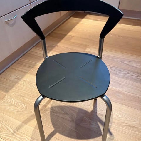 Lækker stol, designet af Bent Krogh. Støbt blødt plastik sæde og ryglæn. Metal ben/ramme