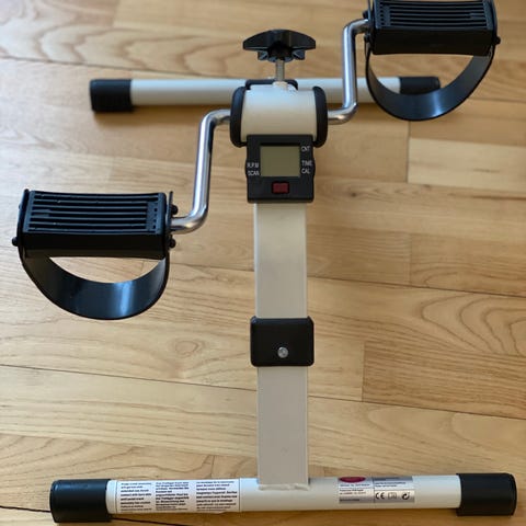 Pedaltræner som giver mulighed for at aktivere arme og ben. Maskinen starter med hastighed 1 og har 12 hastighedsniveauer. På fjernbetjeningen kan der skiftes mellem hastighed, tid, distance samt kalorier.