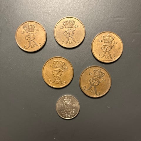Ovenstående mønter sælges SAMLET for: 40 kr.