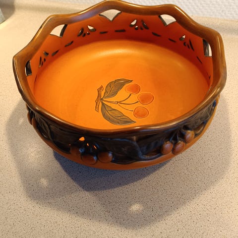 Art deco stil, skål med frugter i keramik fra Ipsens enke.