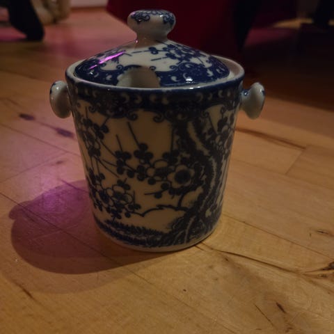 Fin sukkerskål Rørstrand Jasmin ø10cm h7,5cm fra 60’erne fast pris 125kr