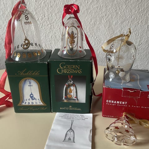 Årets Glasklokke 2000, Bing & Grøndahl, årets glasklokke 2000, med rødt silkebånd og i original emballage.