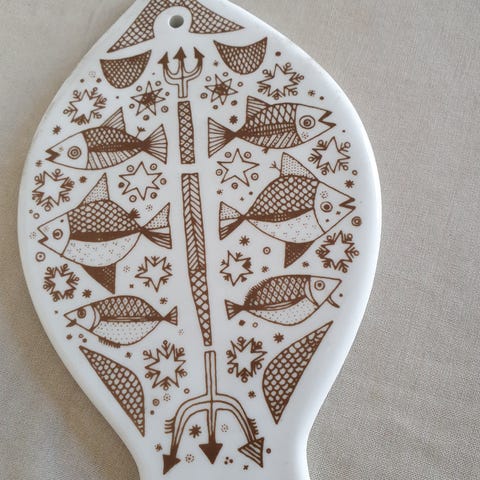 Porsgrund Norway smørebræt i porcelæn, med hul til ophæng. Fin stand uden ridser. mv.