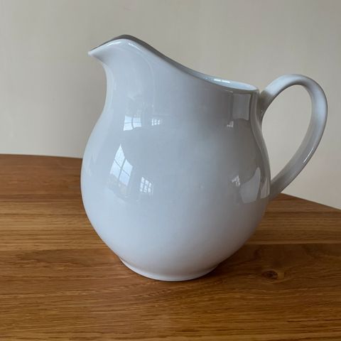 Hvid porcelæns kande med gummi kant. Kan indeholde 1 liter.