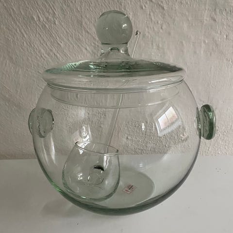 Måler 14 x 14 x 15 (h) cm, selve bowlen måler 8,5 cm i bowlen.