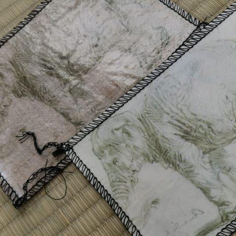 Foldede hænder. Vintage stof billeder til opsyning el ophængning
