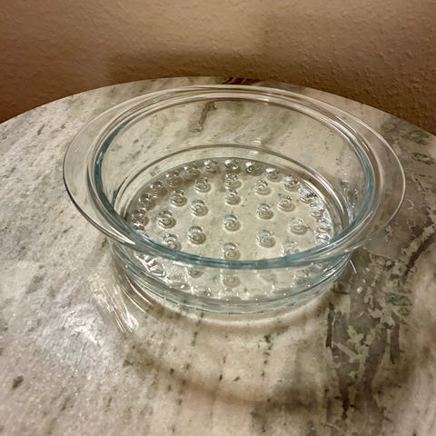 Fransk ovnfast damp fad (Ø = 20 cm) i 2 dele af glas og keramik.