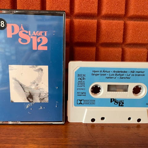 PS12 Hjem til Århus kassettebånd med 18 hits. Indeholder forskellige musiknumre som angivet på coveret.