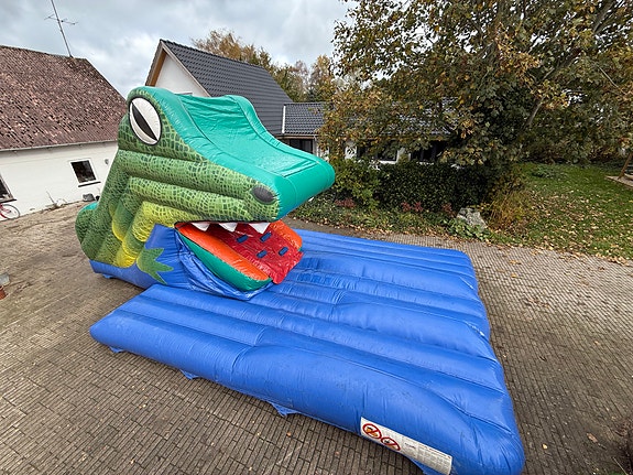 Den er hurtig at puste op og kan transporteres på trailer. Motor, forlængerledning, pløkker og torvværk medfølger naturligvis. Der skal være minimum 1 meters frirum til alle sider og den side med motorer kræver 3 meter.