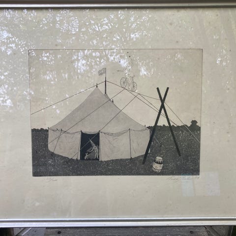 Klovn, akvatinte med 32x48 cm - under tegnet med ET69 og signsatur Freddy Poulsen - i passepartout under glas i ramme 48x67 - for stort til at sendes -> må hentes centralt i Hillerød