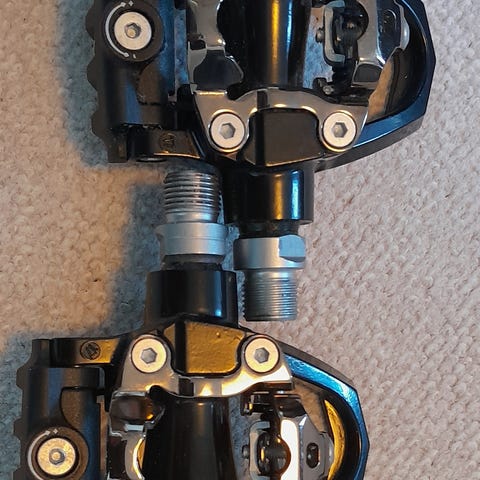 Den blå version af modellen der vejer 105 gram pr. stk. Spindel længde fra midt pedal-flade til krank arm er 56 mm. Smurte og lige til at bruge. Inkl. fragt.