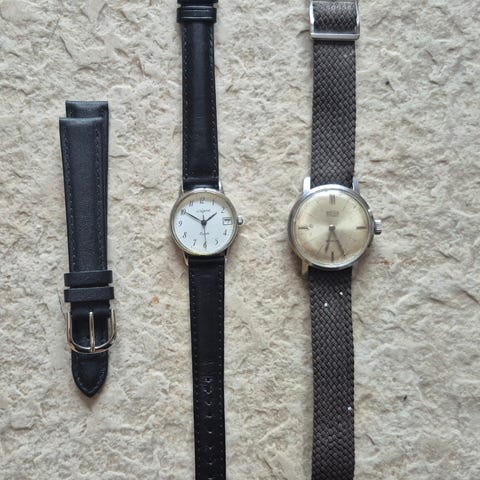 Brugt men velholdt dog med nogle ridser på glasset på uret.