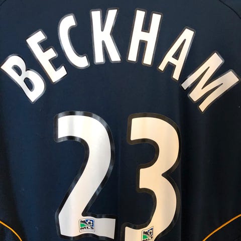 LA Galaxy-trøje fra 2007. Størrelse XL. Har #23 David Beckham bagpå.