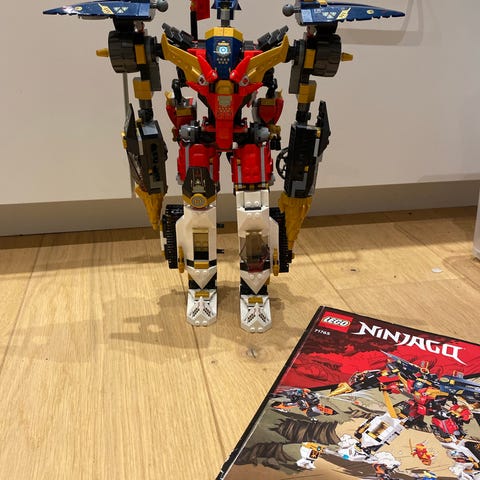 Virkelig fedt set virker som det skal men klister mærket er hved at falde af og hved det ene ben er der en grå klods i stede for en blå men i god stand mangler byggevejledninger og en minifigur