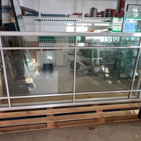 Dobbelt vindueselement i træ, farve brun.