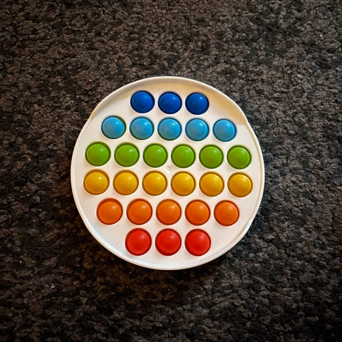 Børn elsker disse pop its. Her er en stor en i flotte farver. Sender gerne.