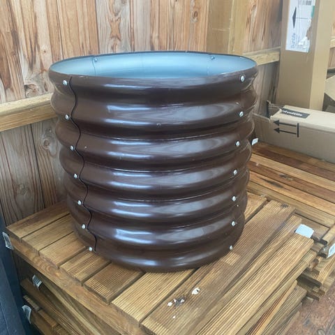 Metal krog med plastik krukke.