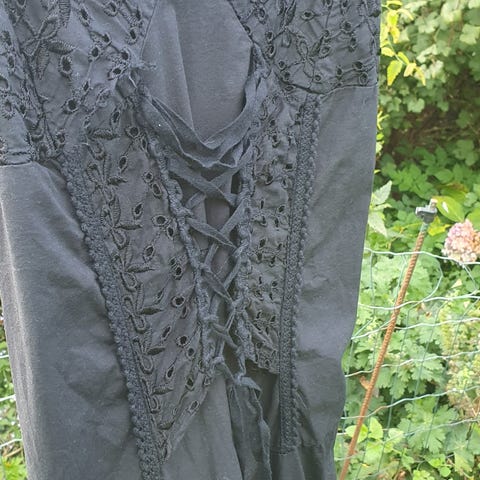 Smuk kjole med vide ærmer og vide i selve kjolen.