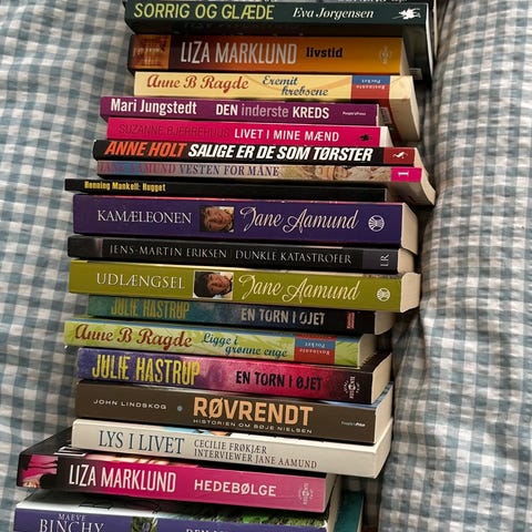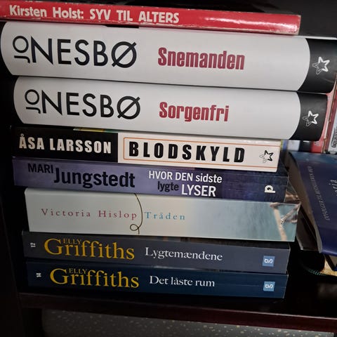 Vinterlæsning - nogle af bøgerne er nye, andre læst et par gange. Der er både hardback, indbundne bøger og paperback.