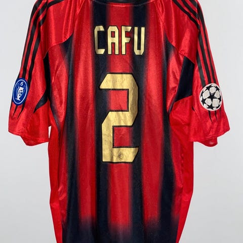 Da Ronaldinho i 2008 trak den ikoniske røde og sorte AC Milan-trøje over hovedet, blev det en af de mest spektakulære transfers i europæisk fodbold. Denne Adidas-trøje fra sæsonen 2008–2009 bærer Bwin-sponsoratet og navnet på en af sportens allerstørste magikere.