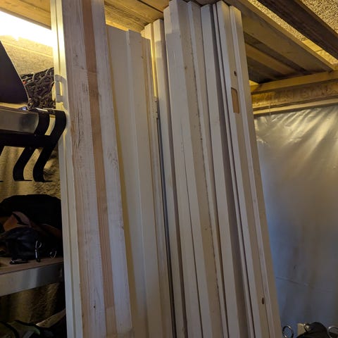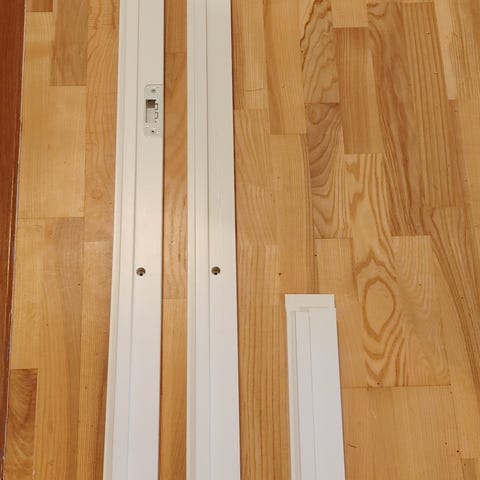 Dørkarme og gerigter. Mål oplyst på pakker/billeder. Har 2 karme og 4 gerigtsæt.