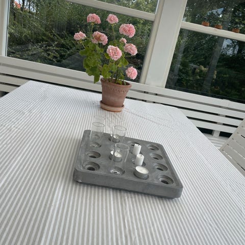 Lysestage/stumpestage, Til fyrfadslys og alm. lys - med 2 blomstervaser