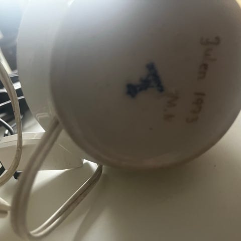 Lampe, AK kaiser, Smuk hvid/turkis med guldkant og cirklerne er også prikket op med guld. fra 1970