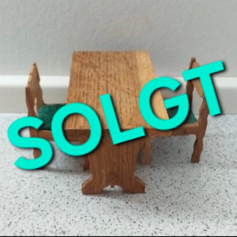Lisa dukkehus, rød blå sofagruppe egetræ 1:16 Lundby str