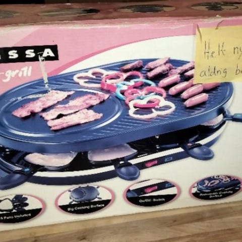 Melissa Fiesta elektrisk bordgrill. Har aldrig været brugt, men emballage har været åbnet. I original emballage (emballagen har fået lidt knubs, men det er ikke gået ud over grillen på nogen måde). Kan bruges både inde og ude.
