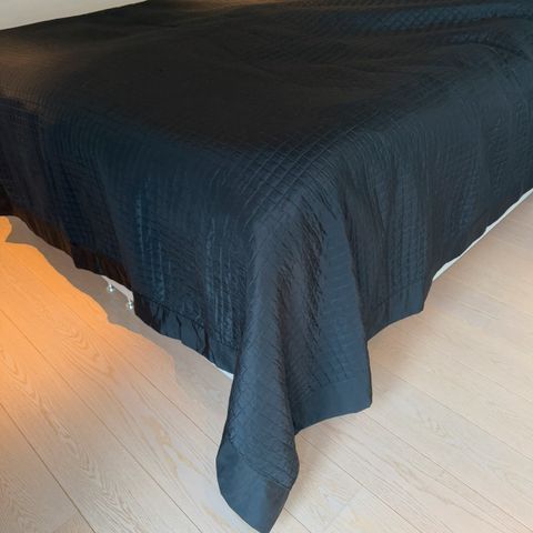 Sengetæppe i sort på den ene side og grå på modsatte.