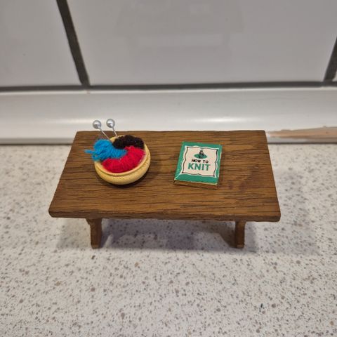 Lisa dukkehus, egetræ møbler 1:16. Bord spisebord stue fad