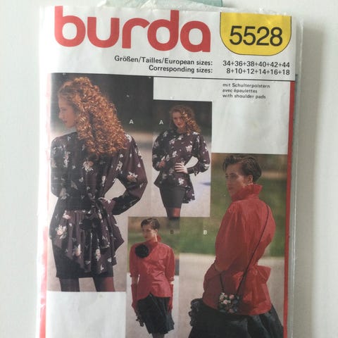 Symønster fra Burda på damejakker og nederdel. Åbnet men ubrugt.