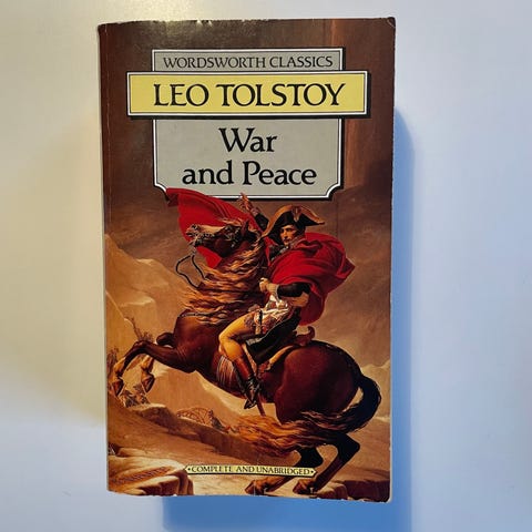 War and Peace, Leo Tolstoy, genre: roman, 1225 sider på engelsk