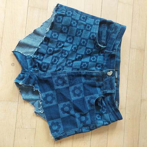 Comfortable high rise jeans shorts with beads.