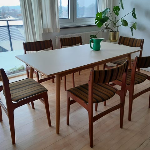 Dette lækre spisebord fra FDB er designet af Poul M. Volther. Bordet er enkelt og stilrent, som kan anvendes sammen med de lækre FDB stole. Som designer gik han op i godt håndværk og elskede den enkle forarbejdning af materialerne og tog afstand fra alt, hvad der var var smart. Dette kan også ses på de møbler han lavede, de rene og enkle linjer, gør at de passer ind i et hvert hjem.
