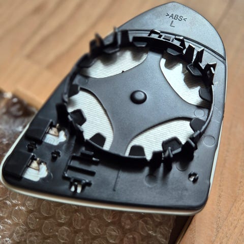Helt nyt sidespejlglas med varme, passer til venstre side (førerside), VW Golf 7 og Golf 7,5, det er ikke originalt VW produkt, derfor den billige pris, men en billig løsning hvis spejlglasset er gammelt og limen ikke holder mere, og spejlet falder af, ligesom det gjorde på min Golf.