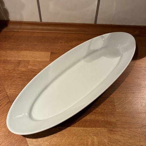 Smalt aflangt fad, der passer perfekt til anretning af fx en hel fisk, kød, pålæg eller sushi.