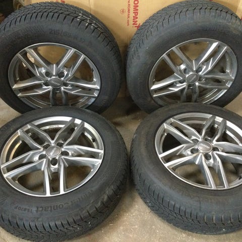 Vinterdæk med 17" alu fælge. Det ene dæk er punkteret.