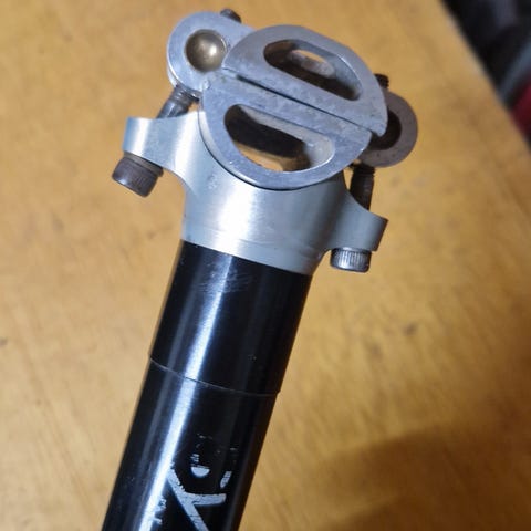 Sælger denne gamle retro syncros sadelpind. Det er størrelse 26,8 som er afkortet til 360mm fra rails og det sorte rør 333mm langt.