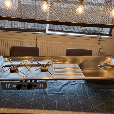 ENO 2 brænder gaskomfur Inkl. stålindsats til båd samt regulator og flaske.