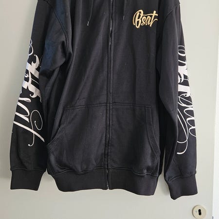 Sort hættetrøje med Amsterdam tryk på ryggen