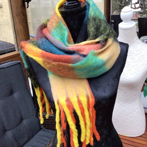 Flot ensfarvet lyseblåt tørklæde der aldrig har været brugt. str. ca. 40 cm x 170 cm.
