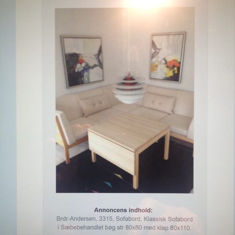 Sofabord, Brdr. Andersen, bøgetræ, b: 80 l: 115 h: 55, Sofabord m/1 klap i sæbebehandlet bøgetræ.